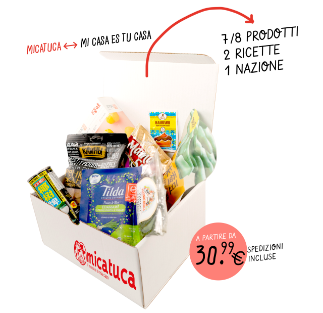 Micatuca è l'acronimo di “Mi Casa Es Tu Casa“: ogni box è un paese che bussa alla mia porta, è il mondo che entra nella mia dispensa. MICATUCA è un invito al viaggio, alla scoperta di sapori sconosciuti, alle tradizioni e alle culture dei nostri vicini con cui condividiamo il mondo.